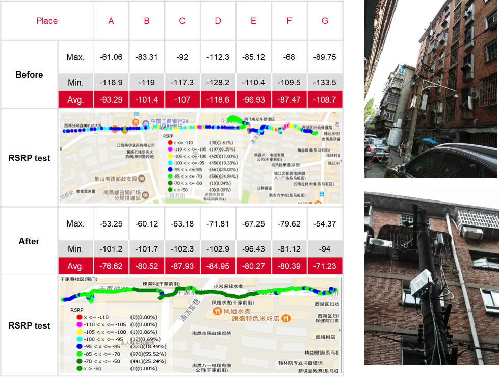 Effectively address the sensitive issues of residential property and deep network coverage for street shops. After deployment, the download rate is twice as high as the original macro station which effectively improves RSRP in residential areas.