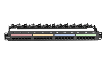 用于六类布线的设备间或配线间,实现干线分配和网络或终端设备连接。过背部的卡线排端接水平或垂直布线,并通过前面的RJ45插口将工作区终端连接到网络交换设备。